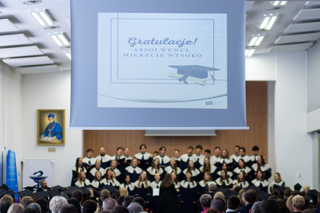 Końcowym akcentem oficjalnej części uroczystości był występ Chóru Akademickiego UM, pod dyrekcją mgr Justyny Przytulskiej i przy akompaniamencie fortepianowym mgra Jakuba Czecha, który jak zawsze, wzbudził ogromny entuzjazm wśród zgromadzonych Absolwentów i Gości.