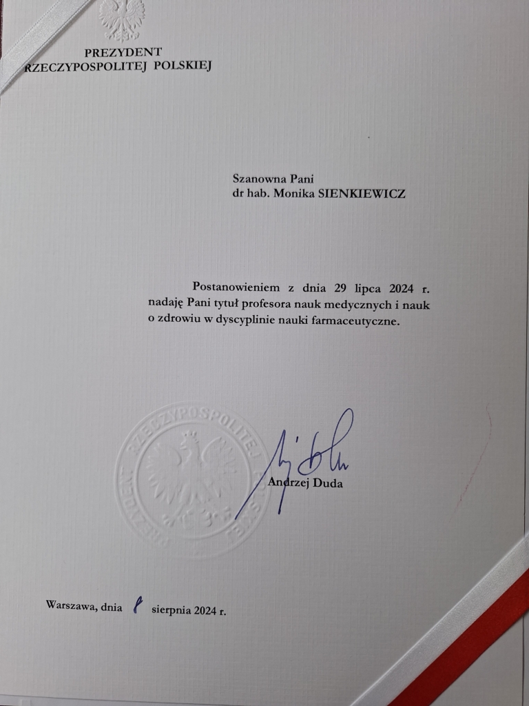 27 listopada 2025 r. w Audytorium im. Prof. Zofii Jerzmanowskiej 114 absolwentów kierunków analityka medyczna oraz kosmetologia otrzymało dyplomy z rąk Prorektora ds. Studenckich prof. Adama Durczyńskiego oraz Dziekan Wydziału Farmaceutycznego prof. Anny Kilanowicz-Sapota.
