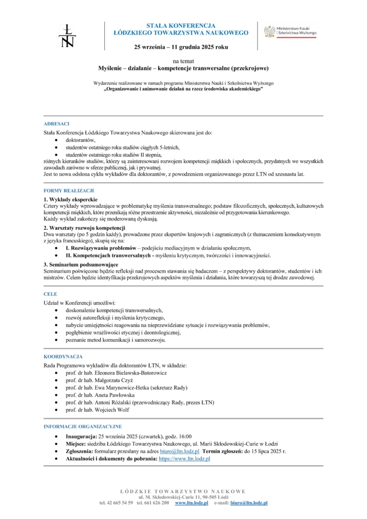 Serdecznie dziękujemy wszystkim prelegentom za merytoryczny wkład oraz uczestnikom za udział w Konferencji.