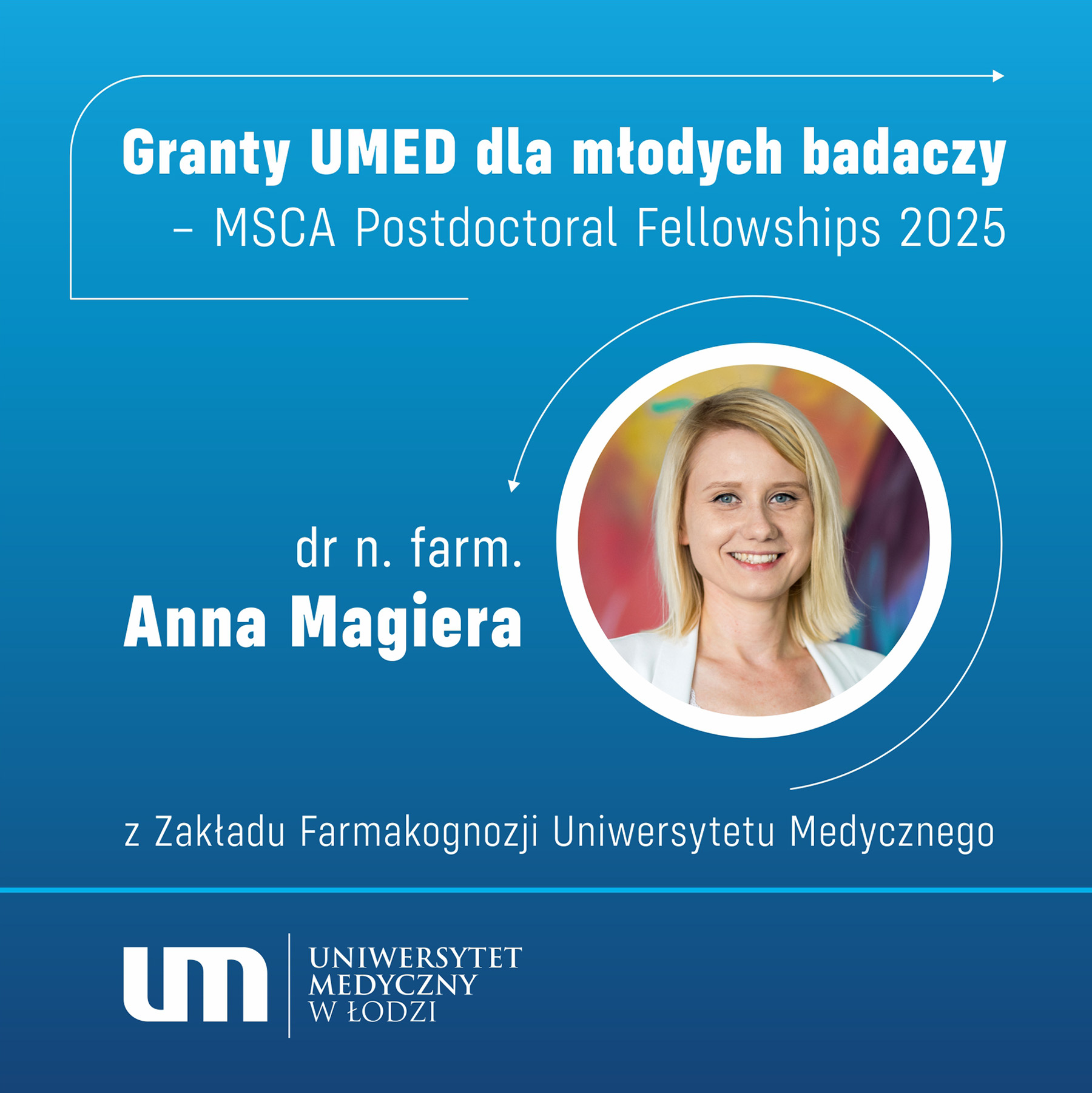 Jest nam niezwykle miło poinformować, że dr n.farm. Anna Magiera z Zakładu Farmakognozji otrzymała grant UMED wspierający młodych badaczy w przygotowaniu wniosków w konkursie MSCA Postdoctoral Fellowships, we współpracy z zagranicznym promotorem.