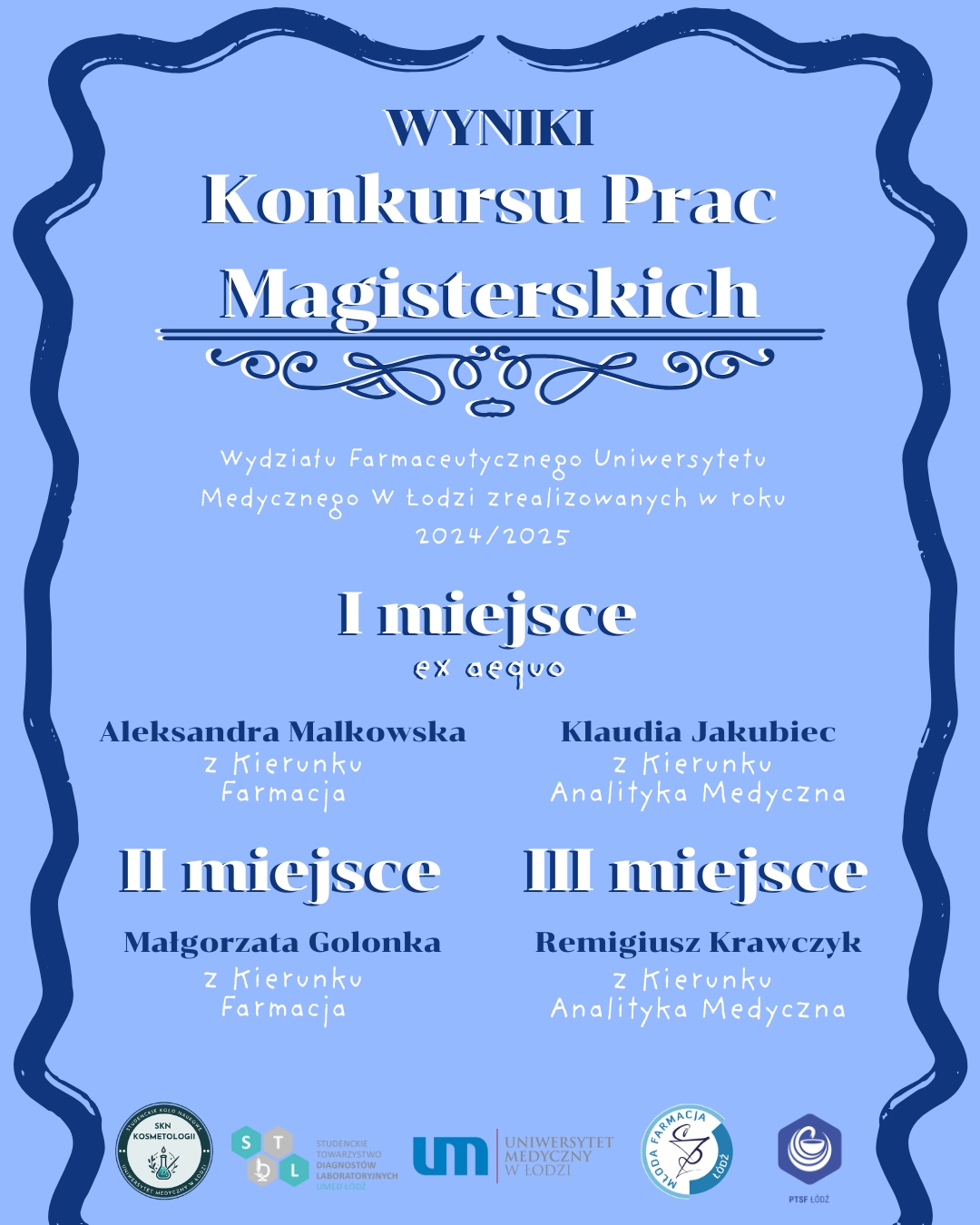 · I miejsce ex aequo Aleksandra Malkowska z kierunku Farmacja oraz Klaudia Jakubiec z kierunku Analityka Medyczna