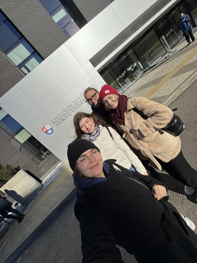 Na Litwie odbywały się seminaria, na których nasze studentki analizowały składy kosmetyków, pogłębiały wiedzę na temat zdrowia skóry, włosów i paznokci. Dokonywały również pomiarów nawilżenia i elastyczności skóry, a także analizowały wytworzone podczas zajęć laboratoryjnych kosmetyki pod kątem potencjalnych odczuć konsumentów.