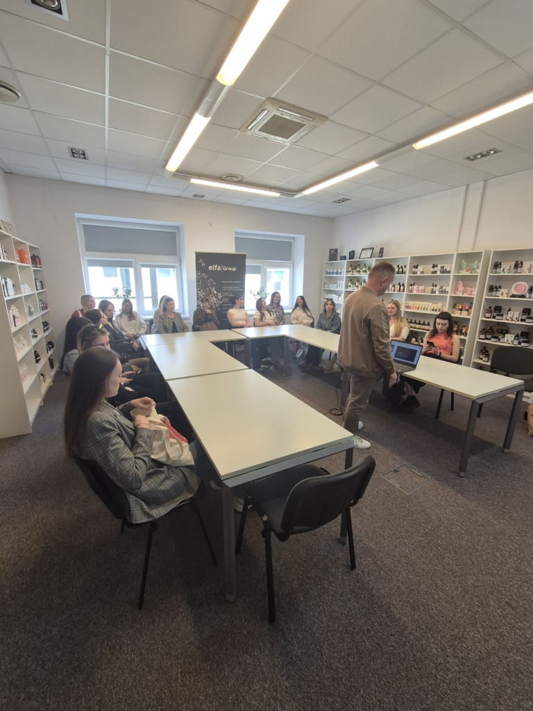 Studentki poznały historię i obecne działanie firmy Elfa Group na rynku europejskim i światowym. Miały możliwość zapoznać się z procesem powstawania masy kosmetycznej – od magazynów surowców, przygotowania wody, po linię produkcyjną, a następnie dział pakowania. Ponadto zapoznały się z funkcjonowaniem działu oceny jakości kosmetyków, w tym wykonywanymi badaniami fizykochemicznymi.