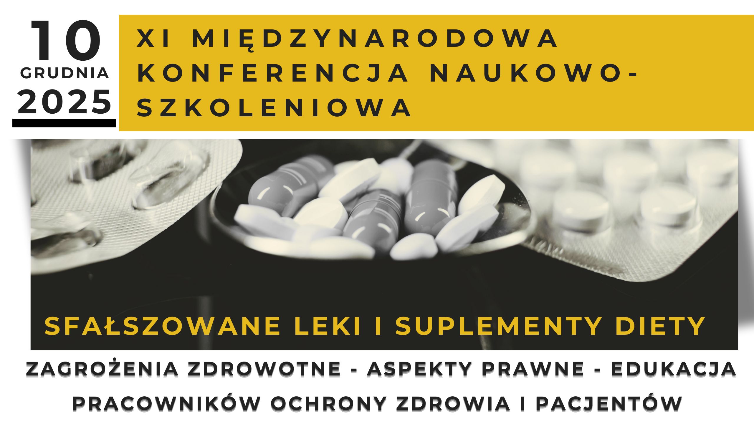 W dniach 8–14 grudnia 2025 roku obchodzony będzie Ósmy Światowy Tydzień Walki ze Sfałszowanymi Lekami, organizowany przez Międzynarodową Koalicję „Fight The Fakes Alliance”. W ramach tego wydarzenia, 10 grudnia 2025 roku (godz. 9.00–18.00), odbędzie się XI Międzynarodowa Konferencja Naukowo-Szkoleniowa, której tematem przewodnim są „Sfałszowane leki i suplementy diety – zagrożenia zdrowotne, aspekty prawne oraz edukacja pracowników ochrony zdrowia i pacjentów.”