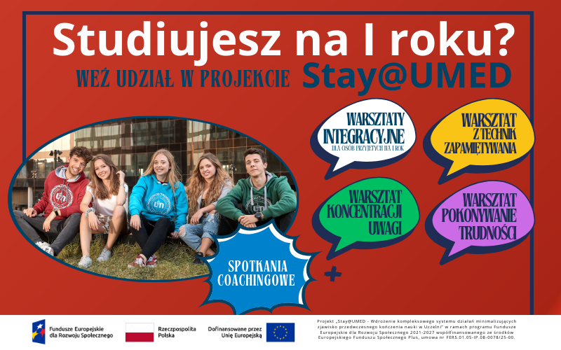 Projekt „Stay@UMED – Wdrożenie kompleksowego systemu działań minimalizujących zjawisko przedwczesnego kończenia nauki w Uczelni” w ramach programu Fundusze Europejskie dla Rozwoju Społecznego 2021-2027 współfinansowanego ze środków Europejskiego Funduszu Społecznego Plus, umowa nr FERS.01.05-IP.08-0078/25-00.