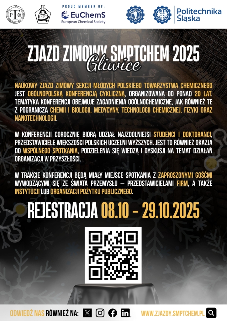 Zjazd Zimowy Sekcji Młodych Polskiego Towarzystwa Chemicznego Opublikowano 15 paź 2025 Przez Dziekanat Farmacja w Aktualności, Studenci Więcej szczegółów, a także formularz zgłoszeniowy dostępne są pod adresem:🔗 https://zjazdy.smptchem.pl